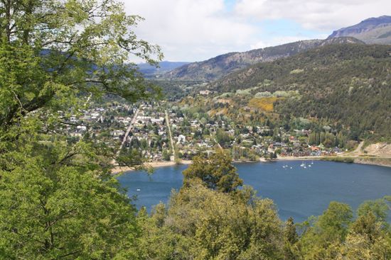 San Martin de los Andes liegt direkt am Lago Lacar, einem See, der vom Gletscher geformt wurde. Der hintere Teil der Heimatfilmkulisse wird von schneebedeckten Bergen gebildet.