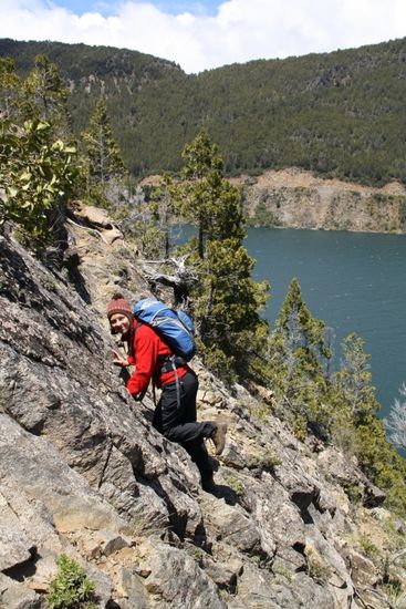 Also, erst mal los von einem in der Naehe gelegenen Aussichtspunkt eine Uebersicht verschafft. Gar nicht so einfach zu finden, da sich der Weg immer wieder gabelt. Wir landen erstmal an einem tollen Fleckchen, das wir gleich fuer den "Mirador" halten und haben Picknick mit Blick auf San Martin. Gehen dann den Pfad noch weiter, bis wir -gefuehlt wie Reinhold Messner- an der Felswand hingen.