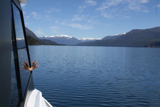 Aber es treibt uns auch weiter: per Bus zwei Stunden und wir landen nun in Villa La Angostura. Die Fahrt ist abenteuerlich: Busfahrer telefoniert, isst Erdnuesse, dann Schneefall, Nebel und dann auch wieder Piste.