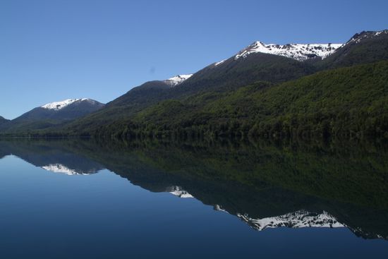 Einer der kuerzesten Fluesse der Welt: der Río Correntoso als Verbindung zwischen dem Lago Correntoso und dem Lago Nahuel Huapi.