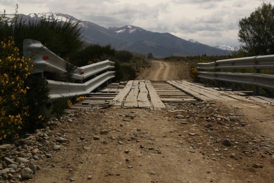 Wer will auch schnell aussteigen, wenn angesagt wurde, dass uns jetzt hier 10 Grad erwarten? Von knapp 30! Wir verlassen das Flugzeug dann doch und sind in einer komplett anderen Welt. Ein uhriges holzverkleidetes Flughafengebaeude empfaengt die einzige Maschine weit und breit, zudem im wahrsten Sinne frische Luft. Das schwuel-warme Klima in Buenos Aires ist hier -wie gesagt- weit weg. Hier hat noch nicht mal die Campingsaison begonnen. Wir hatten tatsaechlich vor, zu campen. Jetzt sind wir froh, wenn wir frueh morgens die Heizung in unserem Hostal zum Laufen bringen. Ueber den Tag wird es jedoch auch so warm, um im T-Shirt herum laufen zu koennen. Es windet aber schon ordentlich.