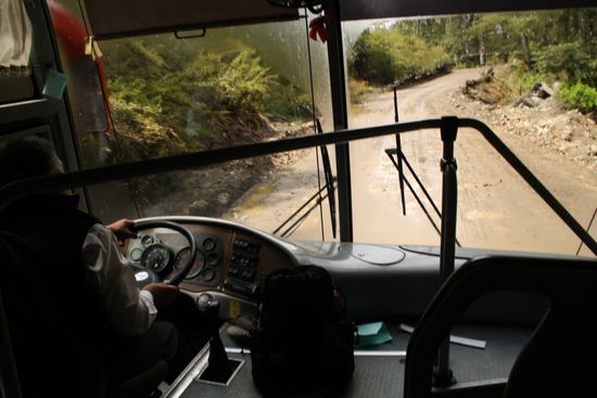 Es begegnen uns -natuerlich an den engsten Stellen- Ausflugsbusse, denn es ist die von jedem Reisefuehrer empfohlene 7-Seen-Route. Wir werden diese bei besserem Wetter noch mal abfahren.