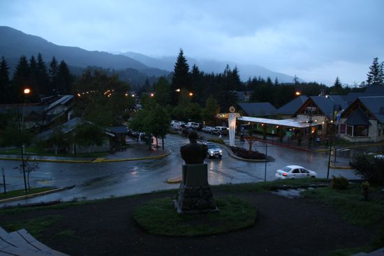 Der Rest der Haeuser und Pensionen liegt im Wald verstreut, was bei dem Wetter ein recht trauriges Bild abgibt.
