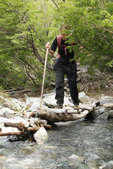 Einige Fluesse sind zu queren, was entweder ohne Bruecke, ueber ein oder zwei Baumstaemme oder ueber einfache Brueckenkonstruktionen passieren kann.