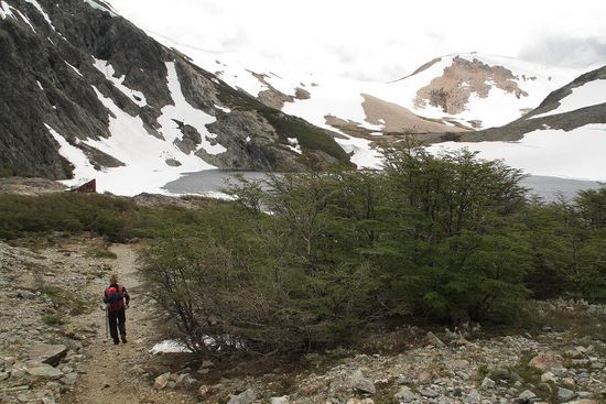 Nun wollten wir es aber wissen: es geht los zu einer Zweitageswanderung zu einer Berghuette an der Laguna Negra. Wir stellen uns vor, nach einer sicher nicht ganz einfachen Wanderung, den spaeten Nachmittag am See zu sitzen, und uns die Sonne auf den Bauch scheinen zu lassen. Na ja....