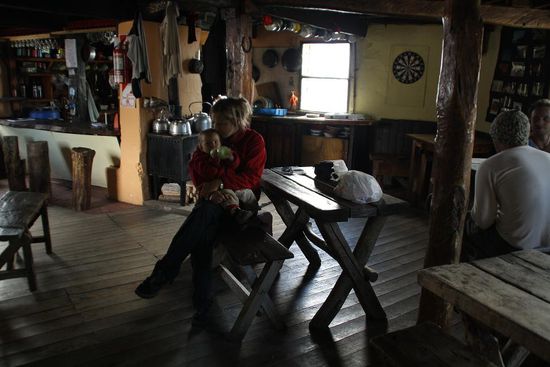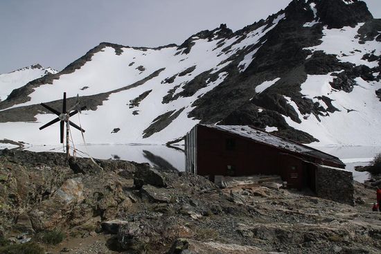 Der Wind blaest uns fast um, als wir den letzten Fluss ueberwinden und endlich das Refugio erreichen. Dieses ist rustikal eingerichtet und vor allem: kalt.