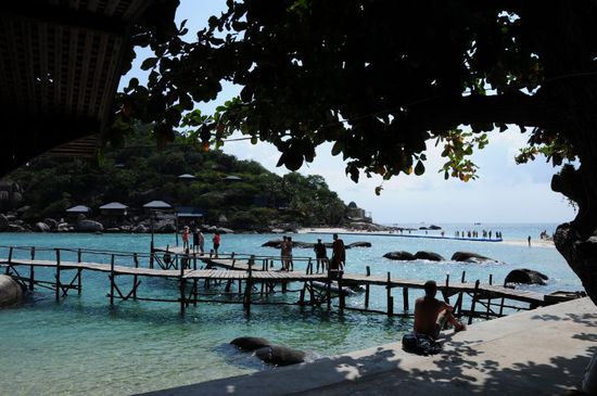 Mit einem Katamaran für über 200 Personen sind wir nach einem kurzen Frühstück in gut 1,5 Stunden nach Koh Nangyuan gefahren worden. Dort haben sich die Passagiere in verschiedene Gruppen -je nach Buchung- aufgeteilt. Wir mussten in kleinere Boote umsteigen, damit wir in der Mango-Bay auf Koh Tao schnorcheln konnten. Bunte Fische, kleine und grosse, klares Wasser, aber leider viele kaputte Korallen. Mittags ging es zurück nach Koh Nangyuan zum Lunch. Die freie Zeit bis zum Nachmittag, konnten wir mit Baden, Schnorcheln oder einem Aufstieg zum Viewing Point nutzen. Auch hier, herrliches Wasser, wunderschöne Landschaft, aber einfach viel zu viel Menschen.