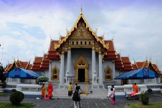 Heute, am 30. 12. haben wir mal wieder einen anderen Tempel angesehen, den wir noch nicht kannten. Sind 2 Stationen mit der Fähre gefahren, den Rest zu Fuss. Der Wat Benchamabophit oder auch "Marmortempel" genannt. Er ist ganz aus weissem Marmor errichtet und dann mit dem für Tempel typischen Dach versehen. Sehr schöne Gartenanlage dazu gehörend mit Wasser, Brücken usw.