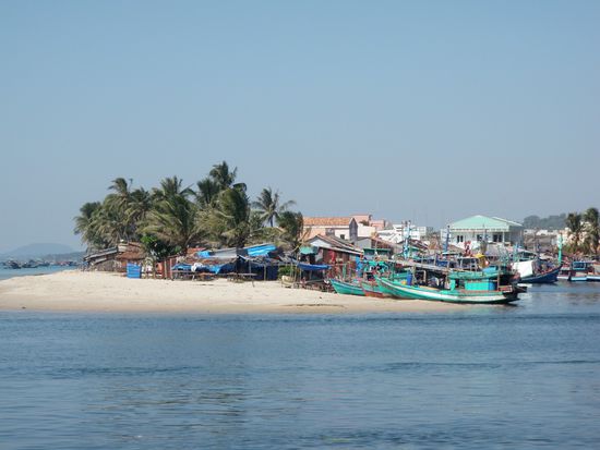 Der Heilige Abend ist hier ein Tag wie jeder andere auch. Wir haben es eigentlich nur dadurch gemerkt als wir am Abend von der Hotelleitung eine Torte mit der Aufschrift Marry Christmas bekommen haben. Ansonsten war den ganzen Tag Ruhe und Entspannung angesagt. Am naechsten Tag haben wir mit dem Moped den noerdlichen Teil der Insel erkundet. Auch hier herrscht abseits der Touristikzentren vor allen in den vielen kleinen Fischerdoerfern bittere Armut. Haupteinnahmequelle der Bevoelkerung ist auf Phu Quoc der Anbau von Pfeffer, Fischfang und die Herstellung der koestlichen Fischsauce Nuoc Mam. Die Fahrt mit dem Moped war wie immer ein Erlebnis. Rote staubige Strassen, teilweise durch Vermurungen unterbrochen, die Umleitungsstrecken fuehrten durch den Wald ueber schmale, unwegsame Wege mit spektakulaeren kleinen und wackeligen Bambusbruecken. Entlang der Kueste immer wieder weisse, endlos lange wunderschoene menschenleere Straende. Bei uns im Ort ist ausser dem taeglichen Strassenmarkt nichts besonderes zu besichtigen. Aber wir verbringen den Tag sowieso grossteils am Strand und lassen es uns mit Massagen, Cocktails und hervorragenden Essen gut gehen. Jetzt machen wir noch einige Tage Badeurlaub und werden uns gegen Ende der Woche den Sueden der Insel anschauen und uns nochmals melden. Dann geht es schon wieder retour nach Saigon und danach fuer zwei oder drei Tage in die Reiskammer Vietnams, das Mekong Delta.