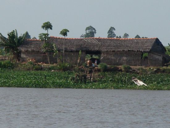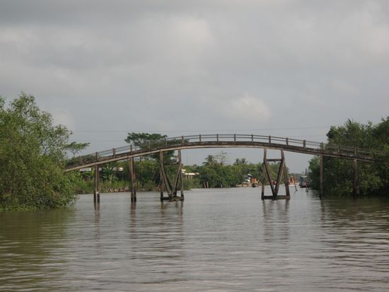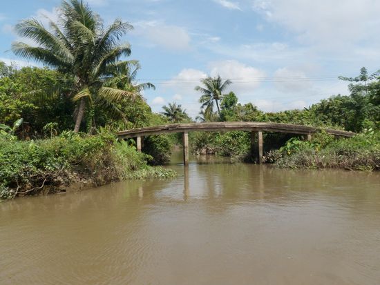 Der Mekong ist mit etwa 4.500 Kilometern Länge der zehntgrößte Fluss der Welt. Sein Weg führt ihn von seiner Quelle im tibetischen Hochland bis zur Mündung ins Suedchinesische Meer durch 6 Laender: China, Myamar, Laos, Thailand, Kambodscha und Vietnam. Wir sind von Saigon nach Vinh Long gefahren, wo sich der Mekong eine Vielzahl von kleinen Muendungsarmen aufteilt. Das Ergebnis sind viele kleine und fruchtbare Inseln welche mit Kanaelen und kleinen Wegen durchzogen sind. Diese Kanaele sind wiederum durch abenteuerliche Bruecken miteinander verbunden. Die Bewohner leben mit und vom Wasser. Von der taeglichen Koerperpflege ueber das Geschirr und Waeschewaschen, alles spielt sich im Mekong ab. Leider gehen auch saemtliche Abwaesser in den Fluss, was ihm auch seine schmutzig braune Farbe verleihen duerfte. Aber was wir auf dieser Insel in den zwei Tagen erleben durften war wieder einmal einzigartig. Es war wunderschoen einfach mit dem Mofa auf diesen kleine Strassen herumzufahren und die Bewohner bei Ihrem Tagesablauf zu beobachten.