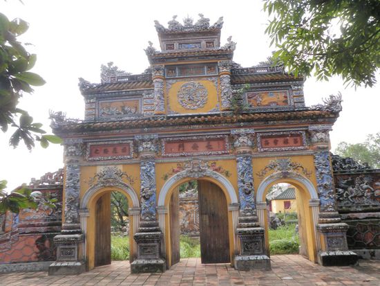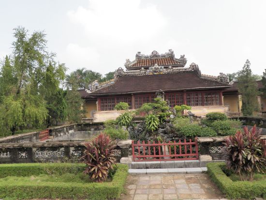 Hue war urspruenglich eine Kaiserstadt und dementsprechend viele Tempel, Palaeste und Graeber sind zu besichtigen. Ich ging gleich in die ehemalige Kaiserstadt um mir die darin befindlichen Gebaeude anzusehen. Die meisten Gebaeude stammen aus dem 17. Jhd und wurden waehrend diverser Kriege zerstoert und immer wieder aufgebaut. Aber die kaiserlichen Hoheiten samt Ihren Clan haben schon zu dieser Zeit zu Leben gewusst, waehrend ihre Untertanen ausserhalb des Palasts am verhungern waren. Es war eigentlich recht interressant diesen ganzen Komplex anzusehen . Ansonsten ist Hue eine schoene Stadt mit guten Lokalen, Restaurants zu angenehmen Preisen. Es gibt viele Parks und kleine Seen im Zentrum und hier kann man sich immer wieder hinsetzten und auf den Fluss der durch Hue fuehrt sehen. Warum er den Namen Parfumfluss traegt ist nicht nachvollziehbar. Am Abend habe ich durch Zufall ein kleines, feines Restaurant gefunden und sehr gut gegessen. Danach freute ich mich seit 3 Tagen wieder darauf in einem ordentlichen Bett zu schlafen. Am naechsten Tag ging es nach einem ausgiebigen Fruehstueck mit einem gemieteten Motorrad auf Tour. Dabei fuhr ich durch landschaftlich wunderschoene Gegenden entlang vom Meer, mit riesigen Gemueseanbaugebieten. Danach kam ich in die Stadt der Graeber. Das ist eine Strasse entlang vom Meer und 40 km lang. Es gibt abwechselnd Doerfer und dazwischen riesige Grab und Tempelanlagen fuer Vietnamesische Familien aus dem ganzen Land. Finanziert werden diese Prachtbauten angeblich von den ehemaligen Boat-Peoples welche mit Ende des Vietanmkrieges ins Ausland fluechteten. Eine klare Trennung zwischen Dorf und Friedhof gibt es nicht, immer wieder befinden sich zwischen einfachen Huetten diese Graeber. Auch gibt es in diesen Gebiet kilometerlange Sandstraende welche ueberhaupt noch nicht touristisch erschlossen sind.