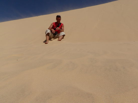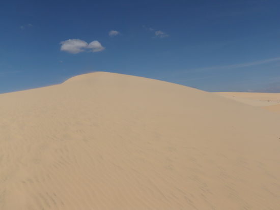 Zeitenweise glaubte ich das wir durch eine Wueste fahren. Weisse und rote riesige Sandduenen, dazwischen Seen und Kokospalmen. Ein traumhaftes Panorama. Das Meer ist ebenfalls wunderschoen, einziger Nachteil ist das relativ starker Wind blaest. Darum ist auch alles voll von bunten Kitesurfschirmen. Wenn ich mehr Zeit gehabt haette, haette ich das probiert. Aber vielleicht ergibt sich ja noch die Moeglichkeit. Mui Ne ist ein Surfparadies ueberall Surfschulen und Surfstationen und in der Stadt ist die Hoelle los. Bars, Bars und nochmals Bars und in diesen 90% russische Pauschaltouristen.. Ueberall stehen Hinweisschilder und Speisekarten in russchischer Sprache. Aber ein paar Kilometer ausserhalb ist wieder vietnamesisches Flair. Ueberall neben der Strasse Essenstaende und kleine Lokale mit fangfrischen Fisch und als Gaeste grossteils Vietnamesen. Ich habe wie immer ein Mofa und bin heute eben zu diesen Duenen gefahren. Obwohl ich am Vormittag unterwegs war war der Sand schon so heiss das man selbst mit Schuhen kaum gehen konnte und durch den Wind bekam man ein Ganzkoerperpeeling gratis dazu. Kinder vermieten in den Duenen Hartplastikplatten mit welchen man von den Duenen herunterrodeln kann. "na ja hab ich halt auch gemacht".