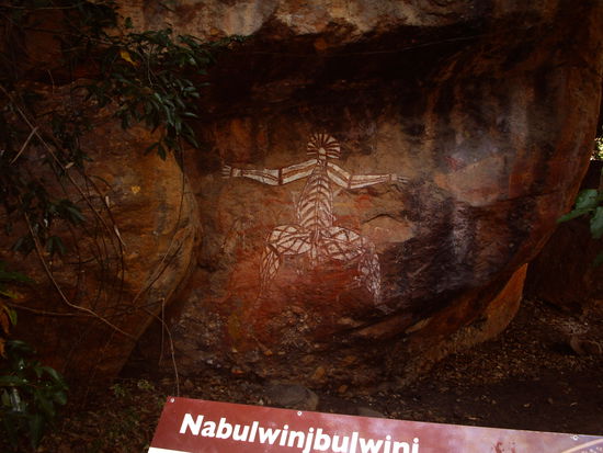 Nach der wunderschönen Bootstour ging es weiter Richtung Jabiru und da wir noch recht zeitig waren, machten wir einen kurzen Abstecher zum Nourlangie Rock, um die dortigen jahrhundertealten Felsmalereien der Aboriginals zu bewundern. Dann machten wir uns auf den Weg zu unserem Hotel, um nach einem schmackhaften Dinner todmüde in dei Betten zu fallen.