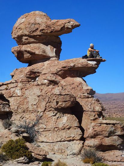 Es ging uns wirklich so beschissen wie noch nie auf dieser Reise, Beiden wohlgemerkt, an einen Aufstieg zum Vulkan Ollague 5865 m war unter diesen widrigen Umständen natürlich nicht zu denken. Irgendwie schleppte uns Villa Venus wie im Delirium in das beeindruckende Valle de Rocas, wo die schräg skurrilen Steinen die Karmas unserer Mägen positiv beeinflussten.