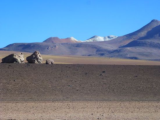 An den heissen Quellen bei der Laguna Salada parken wir wieder einsam, hier lassen wir uns in den natürlichen Badewannen unsere Haut schrumpeln, kassieren einen deftigen Sonnenbrand und beobachten die vor uns in der karibisch schimmernden Lagune stolz flanierenden Flamingos. Immer wieder entdecken wir unberührte Gipfel, die einem eine Besteigung befehlen, gleichzeitig gönnen wir uns eine kurzatmige Trimm Dich Runde auf 4300 Meter unter den unverständlichen Blicken der überraschten Vicuna Gemeinde.