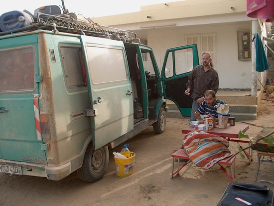 Jochen möchte gern länger bleiben, Markus und ich wollen weiter. Außerdem will Jochen immer noch den Bus verkaufen, wie auch schon in Casablanca. Unseren Einwand, dass wir ja dann nicht nach Senegal kommen, wischt er beiseite. Denn der Käufer würde uns nach dem Kauf nach Senegal fahren. Ich erkläre ihn für verrückt, kein Käufer würde den Wagen kaufen und dann auch noch 3 000 km nach Senegal fahren. So weit ist es ungefähr von Casa bis Senegal. Von Nouakchott bis Dakar sind es ungefähr noch 500 - 600 km. Wenn der uns dann plötzlich in der Sahara raus schmeißt können wir uns ja an die Polizei wenden mit unseren hervorragenden Sprachkenntnissen.