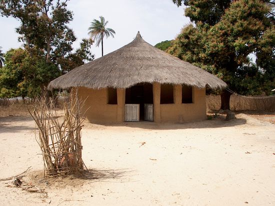 In Baila wurden ein paar Häuser für Touristen gebaut, um ein klein wenig zu verdienen, wenn die Ernte zu schlecht ausfiel wegen zu wenig Regen oder zuviel Regen. Einmal verdorrt die Frucht auf den Feldern, einmal ersäuft alles oder wird sogar weggespült. Wir kamen in der Trockenperiode. Man quartierte uns in den einfachen aber sauberen Hütten ein. Ich bekam den rechten Teil der Rundhütte, Markus den Linken. Jochen schlief im Bus. Einige muskulöse junge Männer und ein oder zwei junge Frauen hielten sich immer in der Nähe auf. Die Frauen kochten und wuschen für uns, die jungen Männer begleiteten uns, wenn wir ins Telecentre wollten. Unsere Verbindung zur Heimat, denn die Handys gingen hier nicht.