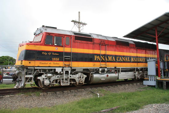 Also sind wir morgens freuh mit dem Luxuszug der Panama-Canal-Railway von Panama-City (am Pazifik) nach Colon (am Atlantik) gefahren. Die Strecke dauerte 1 Stunde und fuehrte teilweise direkt am Kanal vorbei. Im Luxuszug gab es grosse schmutzige Fensterscheiben und sogar einen Kaffee gratis