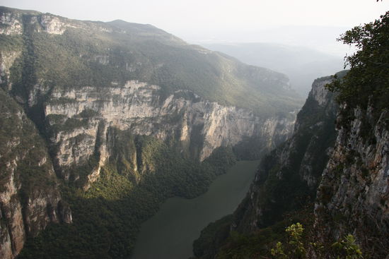 Weiter auf unserem Weg nach Cancun lag auch noch der "Sumidero Canyon". Hier sind wir mit einem Schnellboot durch den Canyon gefahren und konnten die steilen und z.T. 1000m hochen Steilwaende auf uns wirken lassen.