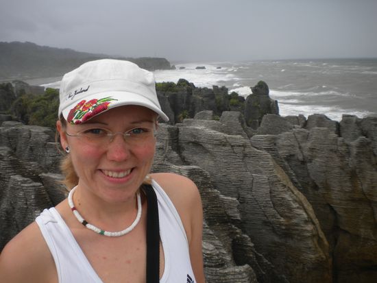 Nach unserer Beachtour fuhren wir am 4.1.10 die Westkueste Richtung Sueden - es regnete in Stroemen! Und wenn wir so schreiben, dann meinen wir das auch so - es schuettete. Auf dem Weg zum Fox Glacier uebernachteten wir auf einem CampSite bei den Pencakerocks - Steinformationen, die durch das Meer und die Erosion ueber Jahrmillionen wie ein Stapel Pencakes (kleine Pfannkuchen) geformt wurden.