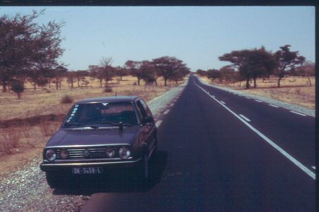 Am nächsten Tag wollte er mich zu dem Mann bringen, der sein Auto für 120€ für 10 Tage verleihen wollte. Natürlich war das Ganze gar nicht so einfach wie man sich das denkt. Erstens spreche ich kein Französisch und englisch nur fragmentarisch. Demba spricht etwas mehr englisch. Wie dem auch sei, ich hing erst mal rum, bevor wir endlich den Mann treffen konnten. Aber bei dem Franzosen war es recht gemütlich, ein festes Ziel hatte ich ja auch nicht. Ich wollte eigentlich nur den Teil Senegals sehen, der mir auf der ersten Reise entgangen war. Endlich bekam ich einen alten VW Golf Diesel, und ich legte auch gleich los. Auf der ersten Reise hatten wir ja eine Senegalesin kennen gelernt, die uns eingeladen hatte, doch wir hatten dann keine Gelegenheit mehr, die Einladung anzunehmen. Das wollte ich jetzt nachholen. Hatte ein, höchstens zwei Tage dafür eingeplant, dann wollte ich Richtung Osten aufbrechen.