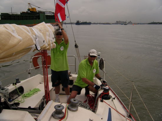 Am morgen tuckern wir Alle dann erst mal eine Weile raus. Der Club liegt an einer Flussmuendung und da haben wir nicht genug PLATZ!