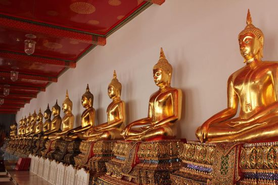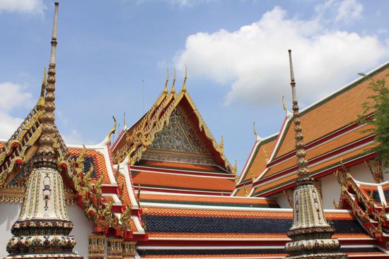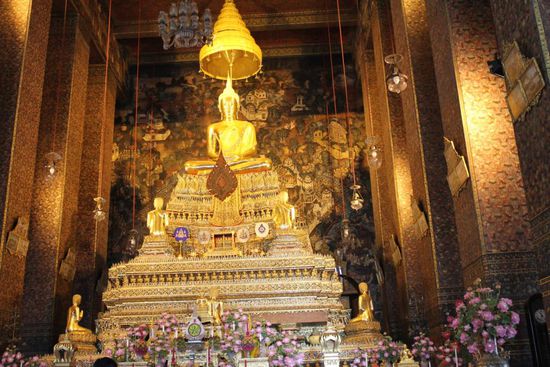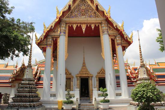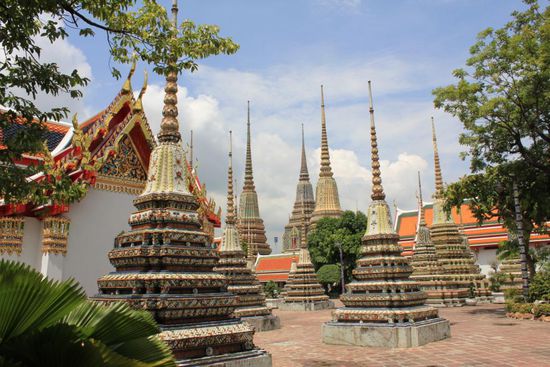 Wat Pho besteht nicht nur aus diesem einen Tempel mit dem liegenden Buddha. Da gibt es noch viel mehr zu sehen. Hier ein paar Eindruecke...