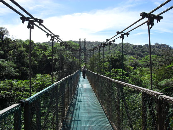 Obwohl ich eigentlich kein Fan von grossen Hoehen bin, haben wir eine Canopy-Tour gemacht, bei der man an einem Stahlseil baumelnd rasend schnell ueber die Baumkronen des Nebelwaldes rauscht!!Die laengste und schnellste Strecke (Zip.Line) war 1 km lang und einige hundertmeter hoch!!Und sooo schnell...!Adrenalin pur!