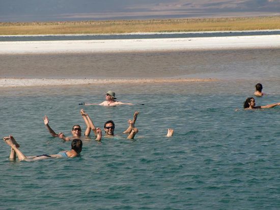Aufgrund der hohen Salzkonzentration kann man nicht untergehen und schwebt einfach im Wasser dahin. Dies macht aber das "normale" schwimmen um einiges komplizierter.