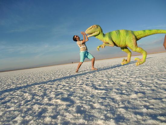 In der Salzlagune gibt es keine richtige dreidimensionale Perspektive und so kann man tolle Fotos mit verschiedenen Objekten machen.