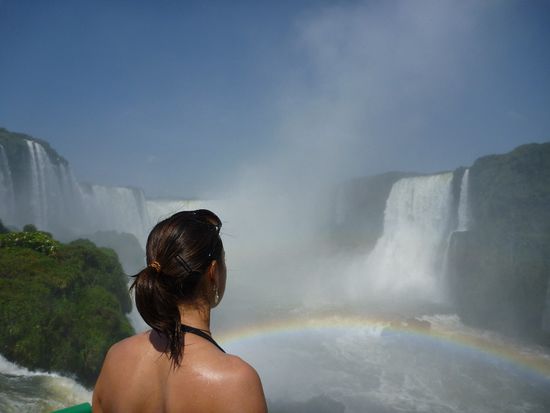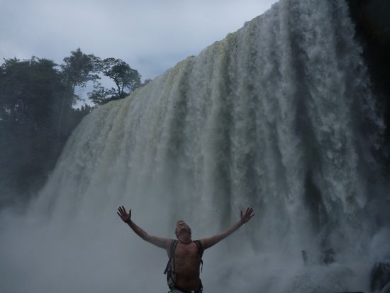 Bootsfahrt mitten in die Wasserfälle: Schuhe und Kleider ausziehen vor diesem Trip wäre sehr ratsam (dann müsste man die Schuhe nicht 2 Tage auf dem Dach eines Hostels trocknen lassen...)