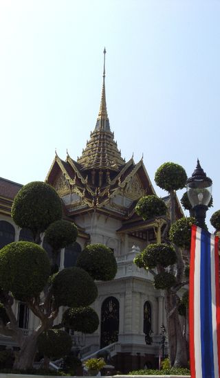 In einem der Gebeude wird ein Smaragdbuddha aufbewahrt. Leider darf man dort keine Fotos machen Das Gebeude ist ziemlich gross und voll mit Thais und anderen Menschen die dort den Buddha anbeten bzw. ihre Gebete vor sich hinmurmeln