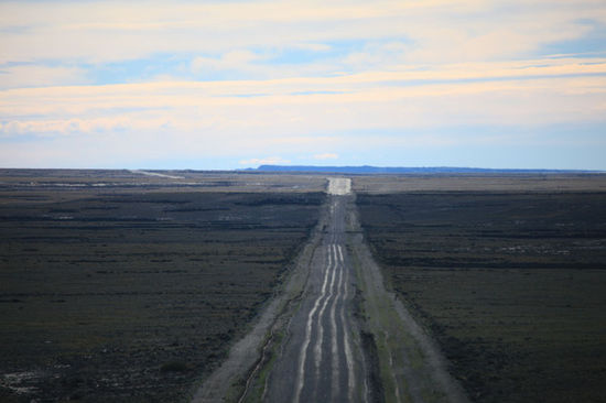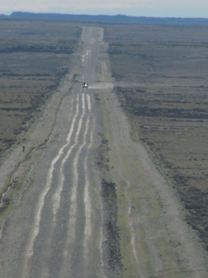 Ruta Quarenta. Legendär. Schotter bis zum Horizont. Kein Baum, kein Haus. Nur vereinzelt an Kreuzungen ein verschlafenes Nest mit einen Hostal, einer Kneipe, und viel wichtiger einer Tankstelle. Das Fahren ist anspruchsvoll. Grober Schotter, einige tiefe Löcher, mal absoluter weichsand, und viel Wellblech. Am besten sind noch die vielen Umleitungen von der Straße. Sie wird geteert. Und einen Großteil der Strecke haben sie schon fertig gestellt. Aber sie ist noch nicht freigegeben. So fährt man also auf den üblen Wellblech in wilden Schlangenlinien wieder und wieder an der Nagelneuen Asphaltstraße entlang, oder überquert sie laufend, weil die alte und die neue Straßenführung voneinander abweichen. Viel Zeit sich die Landschaft anzusehen hat man nicht. Es gilt volle Konzentration auf die Piste, und immer eine feste Hand am Lenker. Bis die Schultern schmerzen, die Arme verkrampfen, und sich das Auge nach etwas Abwechselung sehnt. Dann noch ein bisschen weiter, und wenn es gar nicht mehr geht, dann ist hoffentlich die nächste Tankstelle in Sichtweite.