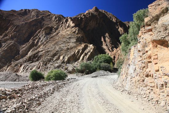 Spektakulaer ging es hinunter in ein schmales Flusstal. Hier konnte ich ein bisschen flotter fahren.