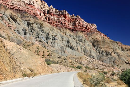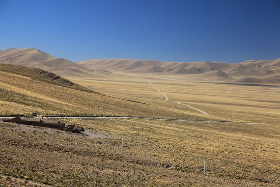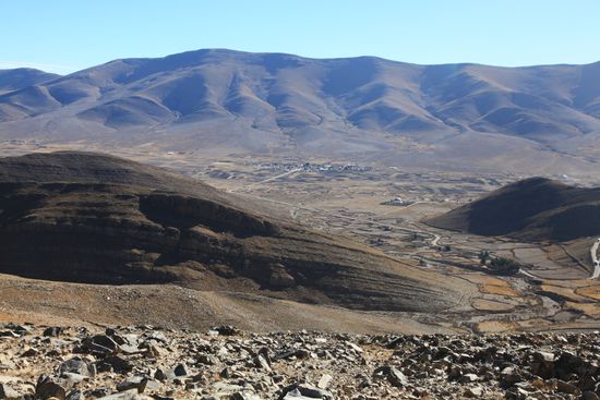 Aber der naechste Berg lies nicht lange auf sich warten. Wieder viele Busse, und viel Staub. Aber dafuer eine grandiose Aussicht auf die kahlen Haenge der Berge. Sie sind hier locker ueber 4000 meter hoch, aber ohne Schnee. Die Strasse fuehrte durch eine wilde nur mit Graesern bewachsene einsame Gegend.