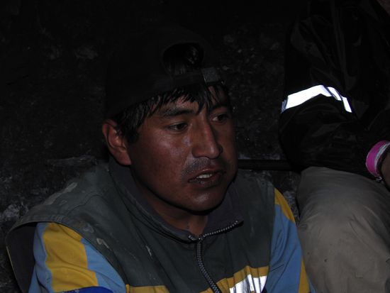 Unten sprachen wir dann mit einigen Minenarbeitern. Sie waren recht umgaenglich. Schon Touristen gewoehnt, die ihnen Geschenke bringen. Ein netter zuverdienst. Sie waren sehr auskunftsfreudig. Da viele aus unserer Gruppe kein Spanisch sprachen musste Chasqui uebersetzen.