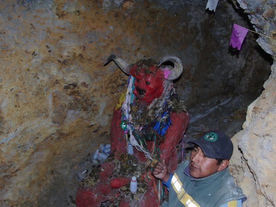 Als erstes kamen wir zu den Maskotchen der Mienenarbeiter. Diesen kleinen gehoernten wesen bringen sie Opfer da. Zigaretten, 96% igen Alkohol, Coka Blaetter.