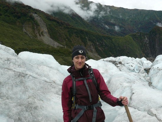 wahnsinn wie die temperatur sank, als wir uns vom regenwald entfernten. unser guide andrew, ein echter kiwi mit viel humor, ging immer mit einer axt vor uns her und schlag stufen in eis, damit wir besseren halt hatten. so krakselten wir dann 3 stunden auf dem gletscher rum, nahmen unseren lunch auf riesigen felsbrocken ein, die durch starken regen ausgeloest, vom hang auf den gletscher stuerzen. es war echt toll....aber ich lasse lieber die fotos fuer sich sprechen.