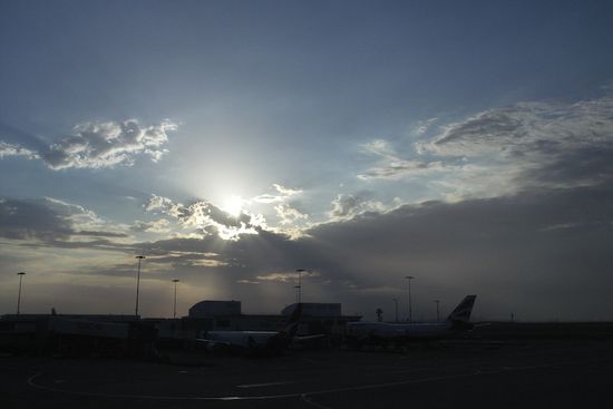 Robert ist bereits lange über Peking unterwegs nach Hause und ich starte in Sydney bei 26° mit Pullover und Jacke.