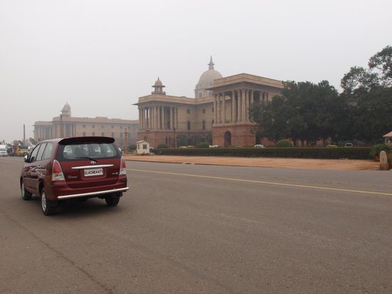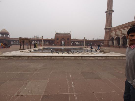 Nach Ankunft in Indien und dem Zimmer beziehen geht es zu einem lauten aber sehr gutem Abendessen in eine Restaurant Bar und danach gleich ins Bett den die Stadtrundfahrt in Delhi beginnt bereits Sonntag am frühen Morgen. Nach einer abenteuerlichen Fahrt durch den Horrorverkehr von Delhi steht als erster Programmpunkt die Jami Maschijd gefolgt von einem Fotostopp beim Delhi Fort und dem Regierungsviertel mit Englischen Kolonial Prunkbauten an. Danach folgen das Indira Gandhi Gate und der Nizzamudin Komplex mit dem beeindruckenden Grabmal Humayans. Zum Abschluss des ersten Besichtigungsteil geht es in das Mahatma Gandhi Museum. Nach einem Mittagessen mit meinem Privatguide folgen noch der Qutb Komplex mit dem Qutb Minar einer Siegessäule, welche der höchste freistehende Turm Indiens ist. Nach einem Fotostopp bei Baha'i House of Workshops welches leider Sonntags geschlossen ist zurück ins Hotel zum Koffer packen und nach dem Abendessen gleich ins Bett.