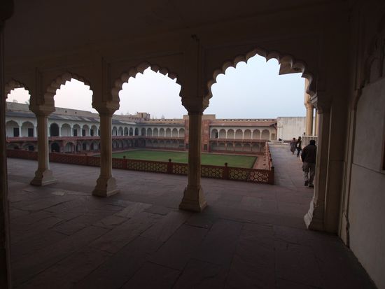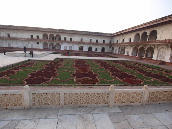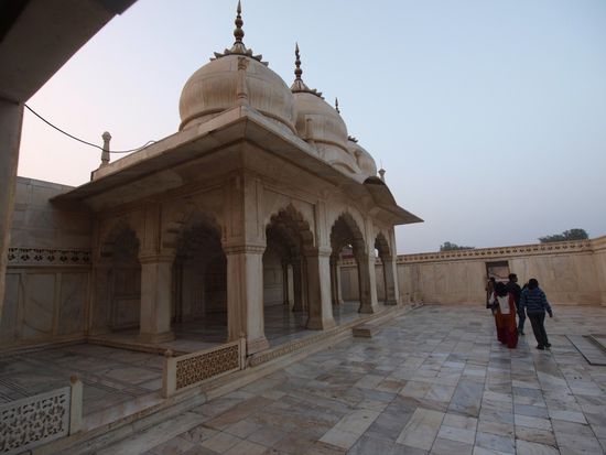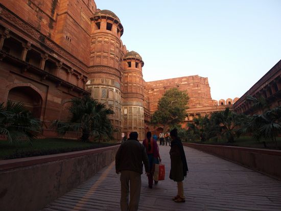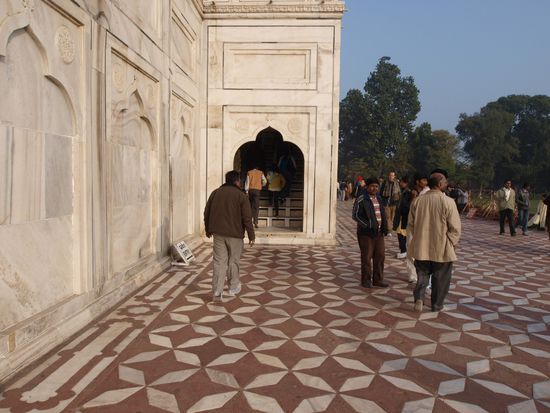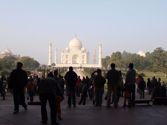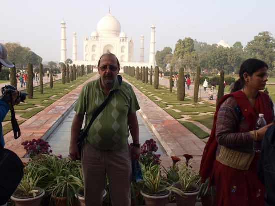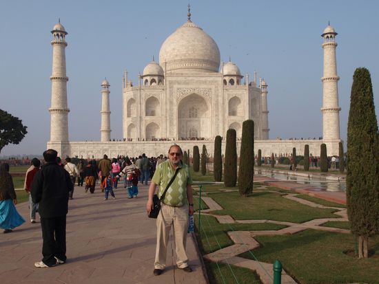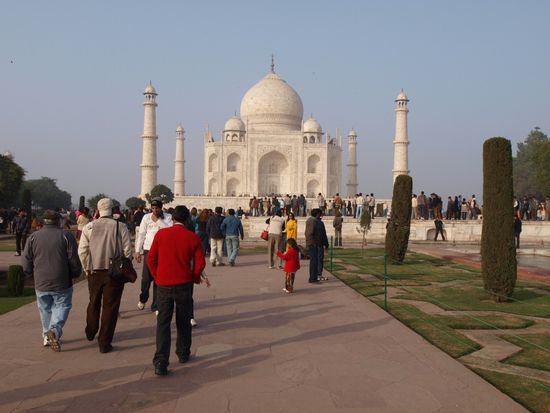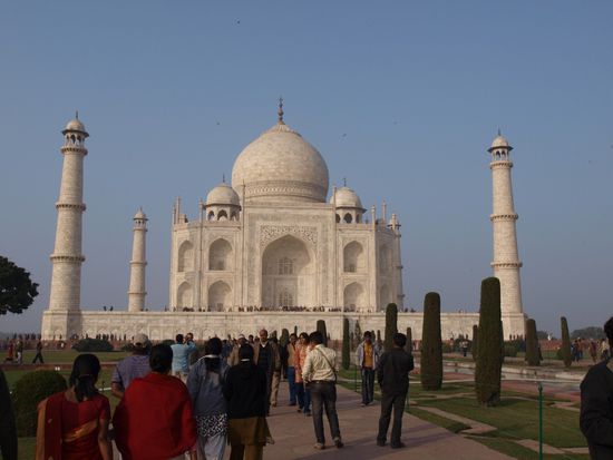 Montag geht es nach Agra wo wir nach einer abenteuerlichen Fahrt auf dem Highway (Häuser stehen unmittelbar am Rand, Ochsenkarren, Kamelfuhrwerke, Radfahrer und gelegentlich auch motorisierte und unmotorisierte Geisterfahrer sind nach Auskunft meines Fahrers durchaus normal. Beim Hotel angekommen wartet schon mein Guide welcher mich zum und durch das Taj Mahal und das Agra Fort begleiten wird. Das Fort ist imposant, das Taj Mahal aber einzigartig. Diese Symmetrie und Eleganz gibt es wohl auf der Welt kein zweites Mal. Abendessen im Hotel noch ein kurzer Bummel im Freien und dann ab ins Bett.