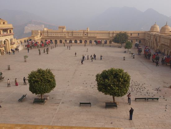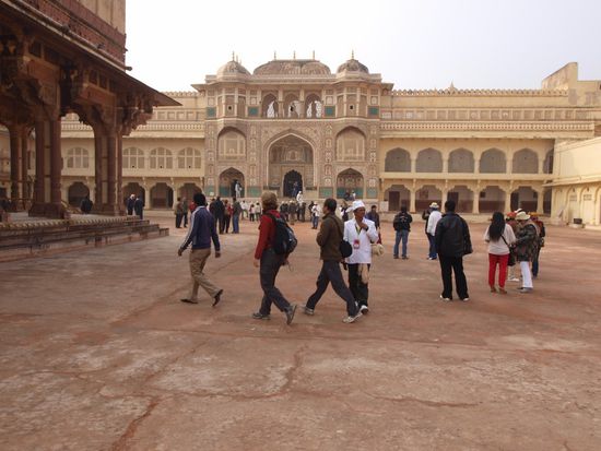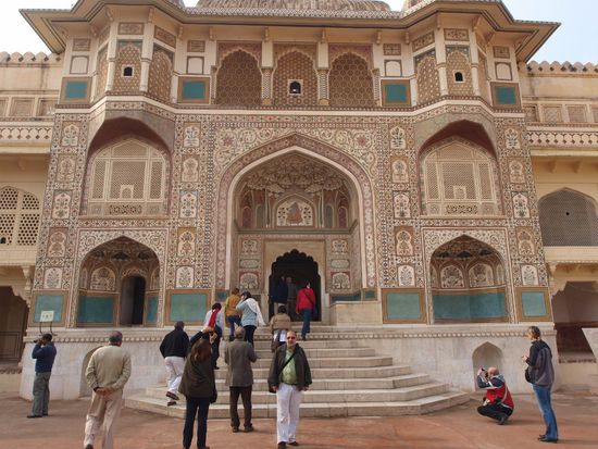 Am Dienstag geht es über Fatehpur Sikri - welches ein wunderbarer Mogulpalast ist den der Mogul Akbar zu Ehren des Wahrsagers Sheik Chisti welcher ihm die Geburt seines Sohnes nach langer kinderloser Zeit voraussagte anlegen ließ. Es ist Brauch im Grabmahl von Sheik Chisti Seidetücher und Blumen zu opfern um einen Wunsch frei zu haben welcher wenn man ihn niemanden verrät auch in Erfüllung gehen soll. Indische junge Frauen wünschen sich meist einen Ehemann oder Kinder. Auch ich habe mein Opfer dargebracht und werde schauen ob mein Wunsch in Erfüllung gehen wird - nach Jaipur wo Dienstags eine Stadtrundfahrt und der Besuch des Amber Forts ansteht. Nach diesem Besuch zurück nach Jaipur um den Palast der Winde, eigentlich nur eine Tribüne für Haremsdamen, aber eine sehr imposante und das Jantar Mantar ein beeindruckendes Observatorium mit einer Sonnenuhr welche die Zeit auf 3 Sekunden genau anzeigen kann zu besichtigen.