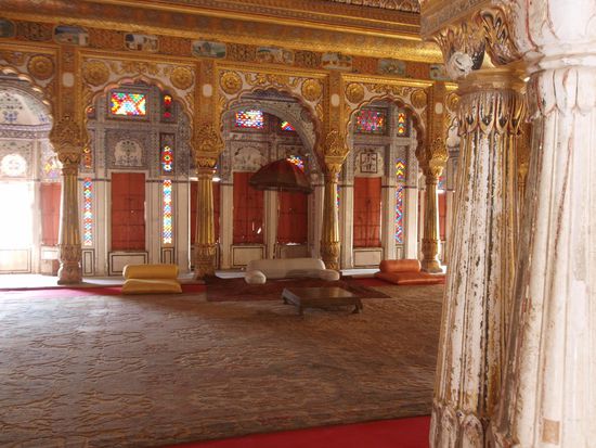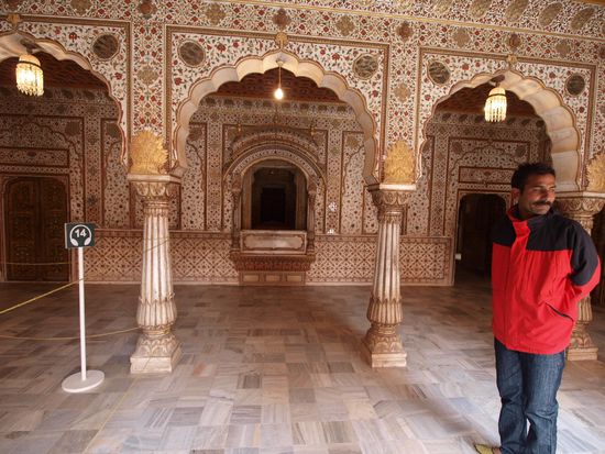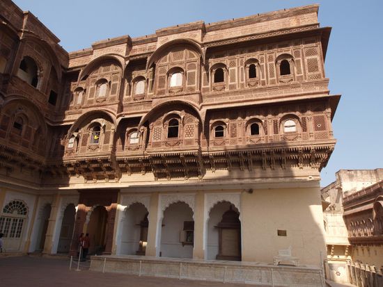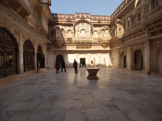 Also weiter am nächsten Tag ohne Frühstück aber mit einem halbwegs auskuriertem Magen. Nach Jodhpur auf weitere zwei Tage. Besichtigung des anstrengendsten, aber auch eines der sehenswertesten Forts bisher. Beeindruckend! Nach einem wunderschönen Maharadschagrabmals und dem Palast des heutigen Maharadschas, welcher zu zwei Drittel eines der teuersten Hotels Indiens ist.