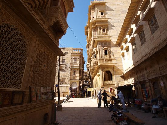 Die Pracht dieser Stadt gründet sich im Handel mit Edelsteinen, Seide und auch Opium. Die reichen Kaufleute und der Herrscher versuchten sich gegenseitig in der Pracht ihrer Häuser zu überbieten. Das Fort einige Bürgerhäuser genannt Havelis und der leider ausgetrocknete Gadisagar Lake mit seinen Ghats sind allemal 2 Tage wert. Der zweite Tag endete leider für mich unangenehm da ich mich auf die Empfehlung meines Guides verlassen habe und in ein Straßenrestaurant Essen gegangen bin!