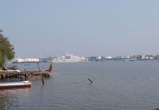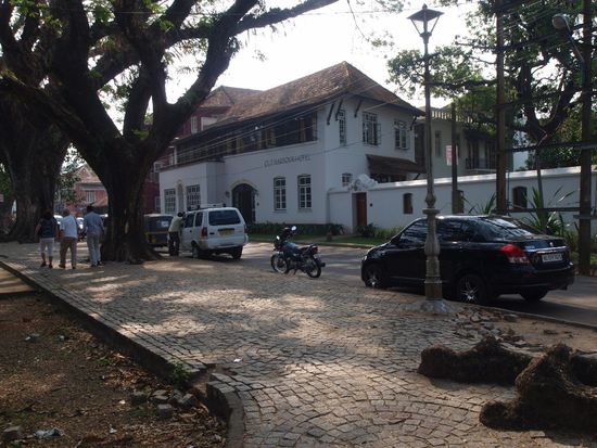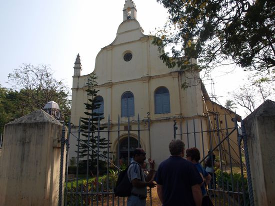 Um 5:30 Aufstehen um 7 Uhr am Flughafen zu sein war recht hart aber wie wir glaubten notwendig. War es nicht! Am Flughafen stellte sich nämlich heraus dass der Flug ohnehin 2,5 Stunden Verspätung haben wird da die Maschine wegen einer Übung der Indischen Luftwaffe zum Nationalfeiertag erst so spät starten durfte! Also in der Abflughalle warten. Durch diese Verspätung natürlich auch noch den Flug von Mumbai nach Cotchin verpasst und auf einen späteren umgebucht worden was für meinen Fahrer im Süden auch eine 3 stündige Wartezeit bedeutete. Aber alles hat sich in Wohlgefallen aufgelöst und so konnte ich um 4 Uhr Nachmittag endlich im bisher schönsten Hotel der Reise namens Harbour View einchecken. Ein Spaziergang zum nicht erreichbaren, da abgesperrten Hafen und das erste Abendessen mit Fisch beendete einen schon etwas langweiligen Tag.