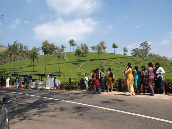 Nach diesem Erlebnis geht es durch Palmenwäldern, vorbei an Wasserfällen und einer florierenden Agrarwirtschaft zur Stadt Munnar welche auf ca. 1800m Seehöhe mitten unter 24.000 ha Teeplantagen liegt. Hier werde   ich die nächsten zwei Nächte verbringen um mir morgen auf einem Ausflug den Nationalpark, einen Rosengarten und die nähere Umgebung von Munnar anzuschauen.