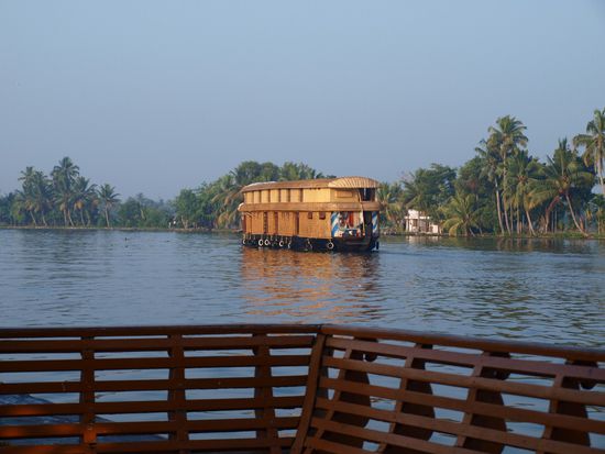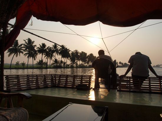 Heute geht es zum nächsten Naturhöhepunkt Südindiens in die sogenannten "Backwaters" einer Naturoase am arabischen Meer. Diese Backwaters bestehen sind eine Ansammlung von Süßwasser Seen welche unmittelbar an das Meer anschließen wodurch sich Salz- und Süßwasser teilweise vermischen was eine besondere Fauna und Flora hervorbringt. Diese Gebiete sind für ihren Arten und Fischreichtum berühmt was sich auch in der ansässigen Küche niederschlägt.