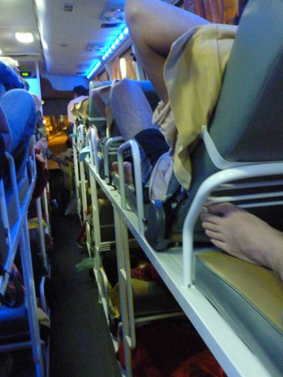 Leider war das aber ein Sleeper und nur ich hatte keinen Liegeplatz, sondern diesen Sitz auf dem normal immer der Reiseführer sitzt - ihr wißt schon, der ganz vorne neben dem Fahrer.