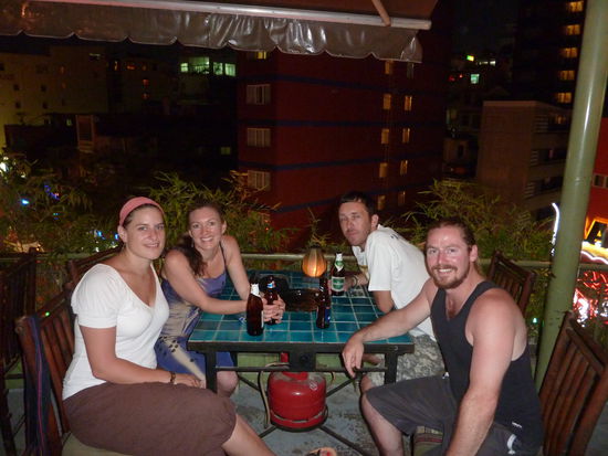 Ein lustiger Abend mit gezapftem, vietnamesischem Bier ( für 0,25Cent) mit 2 Briten und einem Thail Mädel, mit denen ich mir ein Zimmer im Sea Star Hotel, ($5 p.P.), teile.