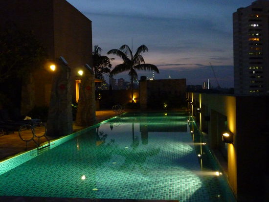Den letzten Abend vor meiner Abreise verbrachten wir auf dem Dach des Hotels am Pool, feierten die Betriebszugehoerigkeit von Tobi und Dirk mit Tiger Beer...